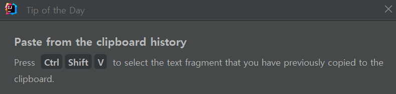 | [IntelliJ] Tip of the Day - Tab (0) | 2023.01.12 |