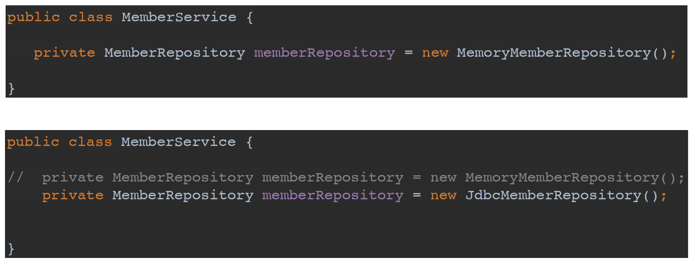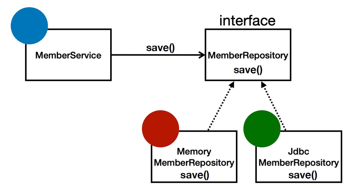 - 스프링을 사용하면 마치 레고 블럭 조립하듯이! 공연무대의 배우를 선택하듯이! 구현을 편리하게 변경할 수 있다.